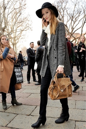 Nicky-Hilton示範大包包:一身典雅的黑和小龐克風的包包相得益彰,利落又大方